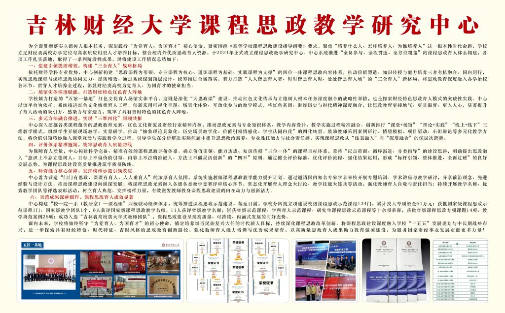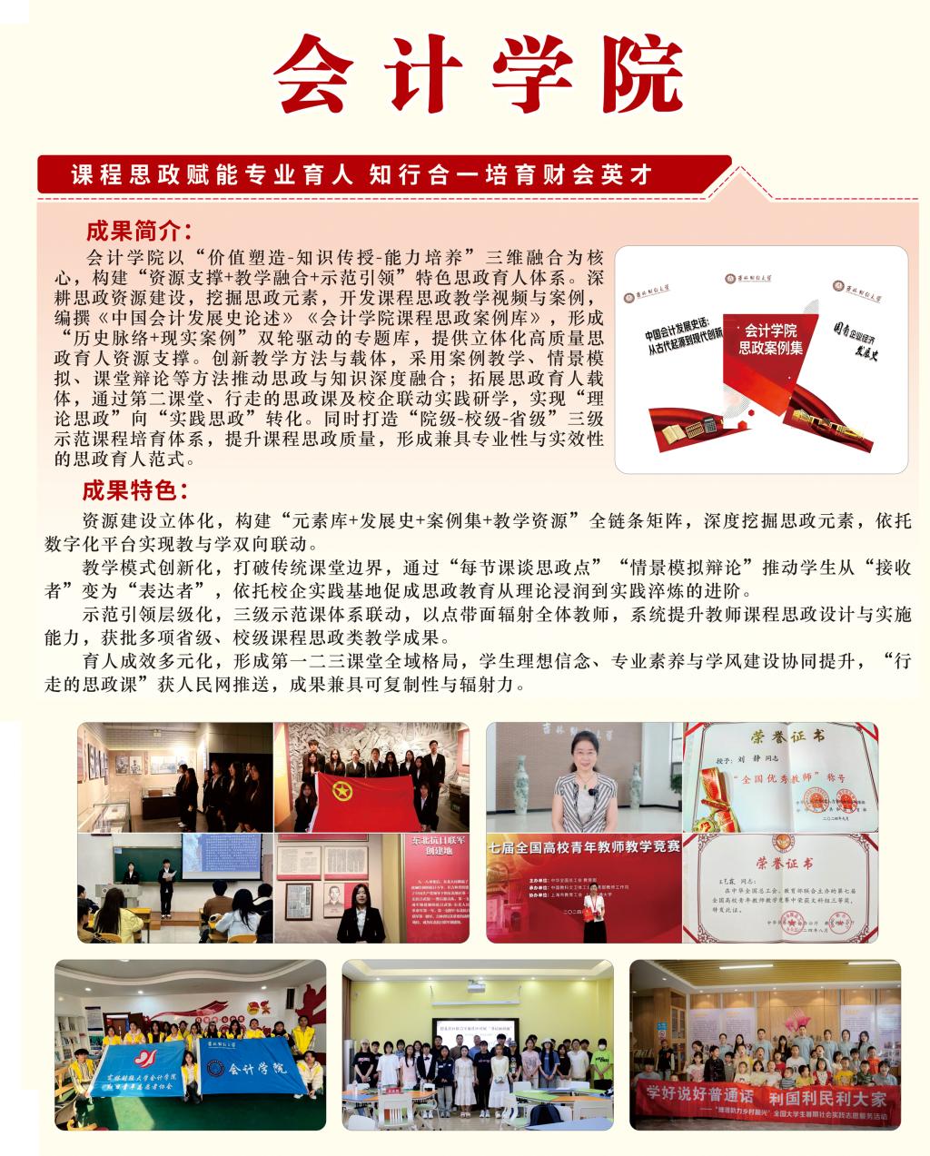 为全面贯彻落实立德树人根本任务,深刻践行“为党育人、为国育才”初心使命,紧密围绕《高等学校课程思政建设指导纲要》要求,聚焦“培养什么人、怎样培养人、为谁培养人”这一根本性时代命题,学校立足财经类高校办学定位与高素质应用型人才培养目标,整合校内外优质思政育人资源,于2021年正式成立课程思政教学研究中心。中心系统推进“全员参与、全程贯通、全方位覆盖”的课程思政育人体系构建,各项工作扎实落地,取得了一...