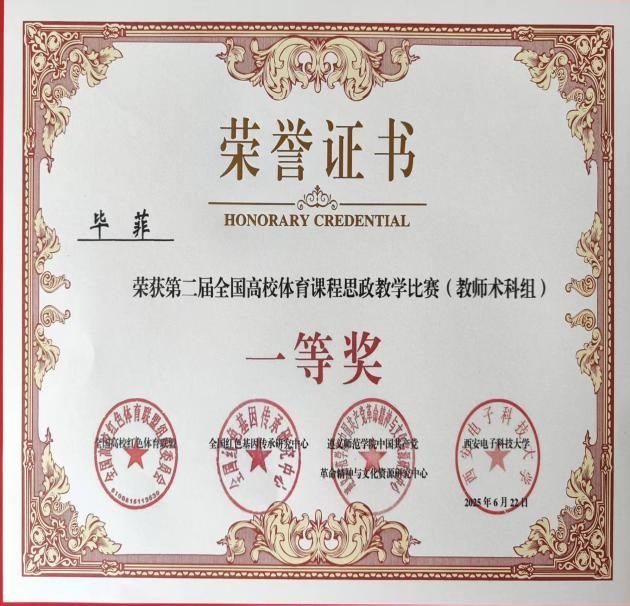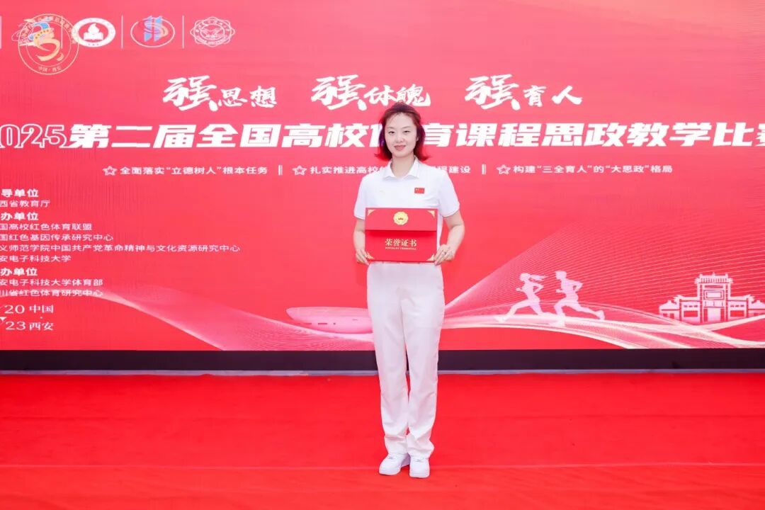 6月22日,第二届全国高校体育课程思政教学比赛在西安电子科技大学落下帷幕。经激烈角逐,我校体育教育部教师毕菲以《以背为盾,以心为刃,团结协作的成功密码》为主题,斩获大赛一等奖。