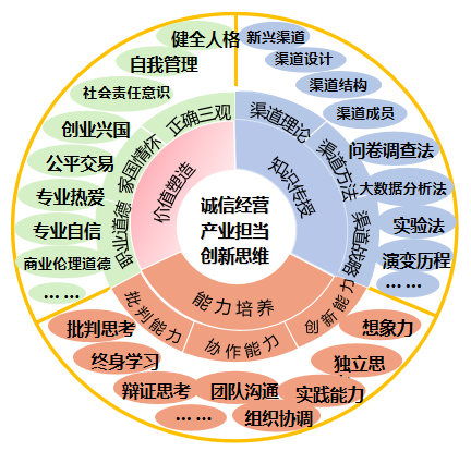 课程立足吉林财经大学培养“应用型、创新型、复合型”高素质财经人才定位,结合市场营销专业“扎根产业实践”特色,紧扣分销渠道管理“链路协同、伦理交织”的课程特点,构建“塑目标 多链条 富资源”三位一体的思政教学模式。