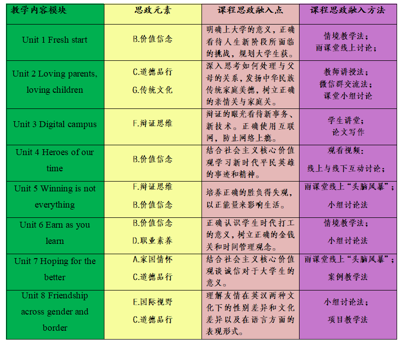 课程团队以教材单元主题为核心,系统构建“教材思政元素库”。对《新视野大学英语读写教程》等教材进行逐单元解构,提炼“成长”主题中的“奋斗精神”、“文化”主题中的“文明互鉴”等核心思政点,形成“单元主题—思政元素—育人目标”对应表,确保资源挖掘的系统性与精准性。结合财经院校特色,重点开发“国际经济治理”“商业伦理”等领域思政素材,建成含300+条目的专业特色思政资源库,为课程思政提供扎实支撑。